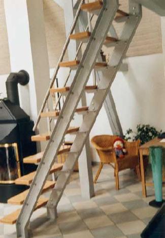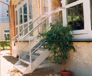 Stahltreppe mit Wangen aus Flachstahl ![]() Treppe für den Außenbereich aus feuerverzinktem Stahl und Gitterroststufen ![]() Raumspartreppe aus Stahl, lackiert. Handlauf und Füllstäbe aus Edelstahl ![]() | Zweiholm- Stahltreppe aus Stahlrohr ![]() Wendeltreppe aus Stahl, feuerverzinkt ![]() |